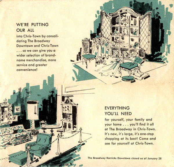 Below: East entrance of The Broadway at Chris-Town, circa 1967